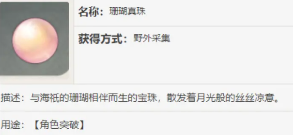 珊瑚真珠作为五郎和心海的突破材料,只有海祇岛和渊下宫才能采集,所以我们携带神里或者莫娜更方便。也可以在商店NPC处购买,珊瑚珍珠在游戏中由两个NPC售卖,分别是山城健太(位于:离岛)、巴巴克(位于:奥莫斯港)。