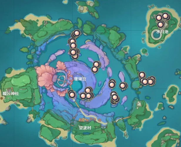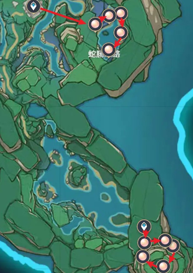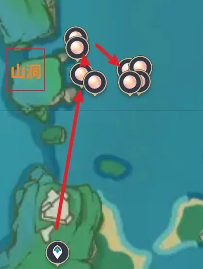此路线需要完成世界任务【海祇之心】后才能解锁山洞入口,这条线路比较远