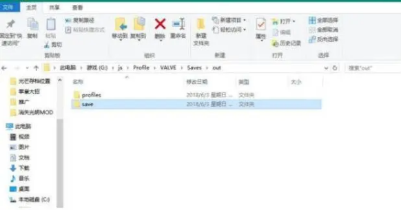 然后进入Profile VALVE Saves out文件后,save的文件里就是存档。
