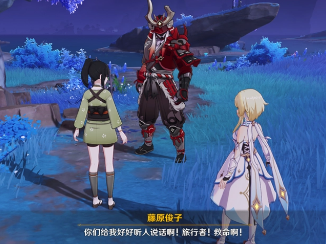 在任务的一开始,我们将在几个QQ人手中解救出一名叫作藤原俊子的女孩。从她口中我们可以得知她在寻找着家中的传家宝,并邀请旅行者一同寻找。