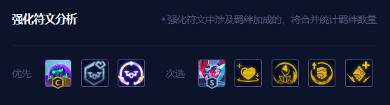 强化符文方面源计划心/魂(快速开4源,后期开6源)、复苏之风(增加续航能力,特别是前中期更强)、源计划甲壳/上行链路/植入(增加血量)、珠光莲花(技能可暴击)最优。
