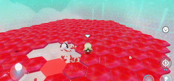 2、第一层像花朵一样的绿色碎片,要是让其他的玩家碰完了,那就没有地板可以接触了,就会向下掉;