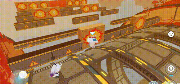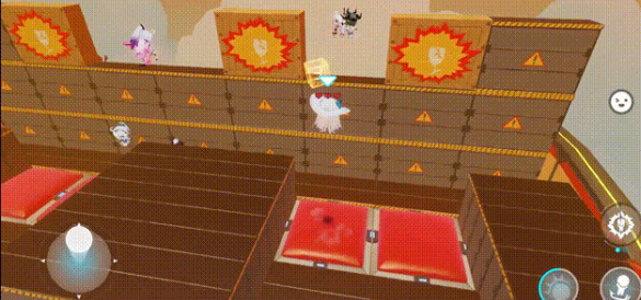 2、后面的平台堡垒要快速找到两边的弹簧垫跳出去,一直待在里面会因与滚筒距离过远而判定死亡;