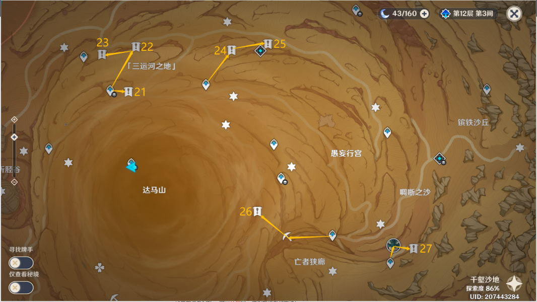 1、千壑沙地第21个指引仙灵的行走路线如下图所示,可以按照路线去寻找指引仙灵。