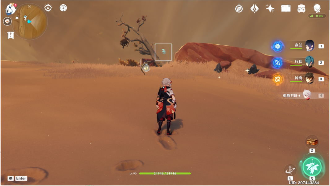 2、先传送到折胫谷东北方向的锚点,玩家们可以在山顶上的枯木旁边,即可看到第20个指引仙灵。