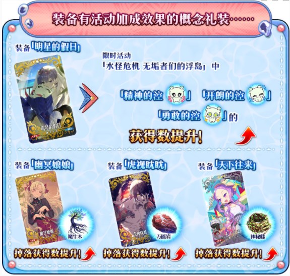 五星奖励礼装·明星的假日:精神的涳、开朗的涳、勇敢的涳掉落+1,满破+2