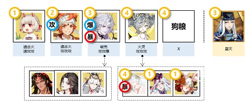 ④备注:活动没有暴击加成,输出最好满暴击,如果食灵和因幡辉夜姬同时在场,注意控制爆伤最高单位须为输出式神,兔子可换成雪幽魂清姬,狗粮可换成增伤式神或者多一个输出(其实没必要)。