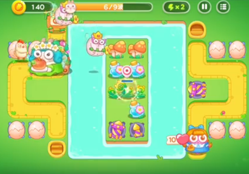 3、持续增加注意摆放位置,兔子和障碍物是一起进行攻击的。