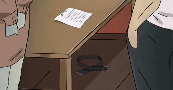 1、物品:皮带、第二个场景男人里点那双腿,遗书;