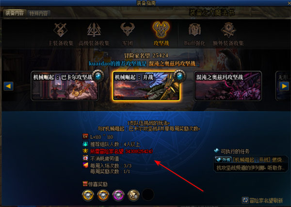 2、小伙伴们入场不需要消耗疲劳值,而且无论是单刷还是组队都可以进入,一周最多进三次,奖励一次。