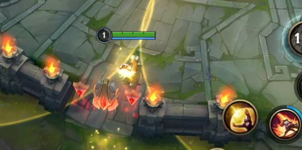 2、使用闪现穿越墙体后,使用位移技能搭配屏障,从下拉位置向泉水移动。