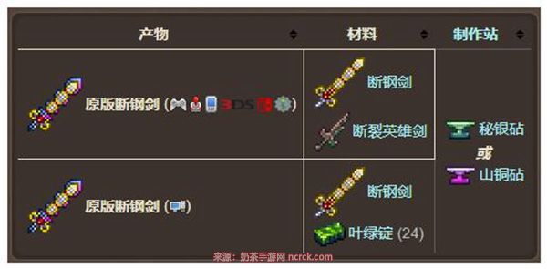 一、泰拉瑞亚原版断钢剑怎么合成