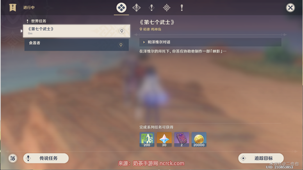 3、 在完成不动鸣神、恒常乐土、踏鞴物语·终幕等前置任务后,开启第七个武士任务。
