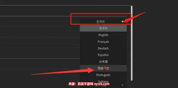 3、点击下拉语言选项,选择简体中文,点击确认。