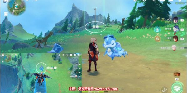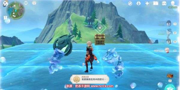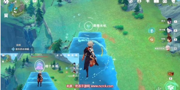 3、然后出现狂风之核,将其击败至1/2血量进入剧情;然后往地图的北方向走,进入风场飞到顶部,获得水神瞳;