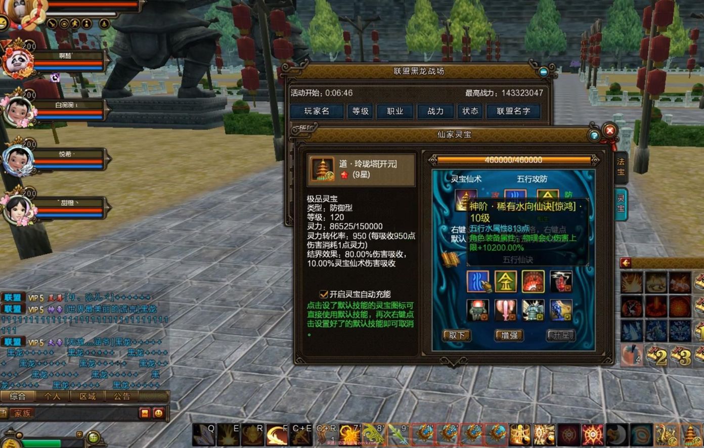 2、 当获得仙诀时,通过操作栏下方的法宝快捷栏进入法宝&灵宝界面,右侧选择“灵宝”一栏,即可进入仙家灵宝系统。