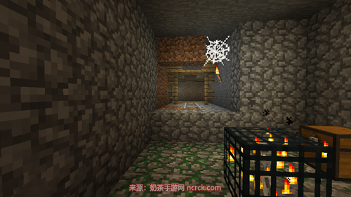 3、 传送后,向下挖掘直至找到地牢。进入地牢后,根据以下步骤找到末地门。