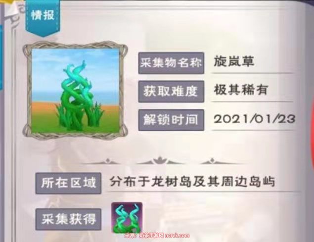 1、 旋岚草是一种稀有的采集物,每隔四小时左右就会刷新一次。