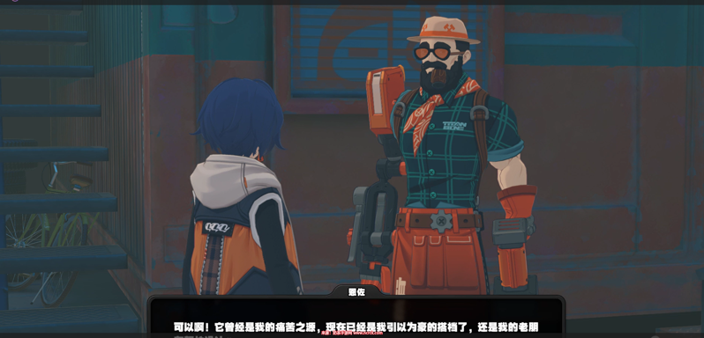 3、 玩家前往改装店门口,与店主恩佐大叔交谈。告知他关于义手照片的事情,恩佐大叔友好地同意并支持这个想法。