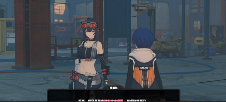 5、 完成义手照片的拍摄后,返回黑雁工地旧址机械维修区与格莉丝对话。