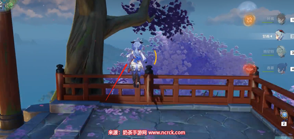 2、进入之后在红色栏杆处跳下去。