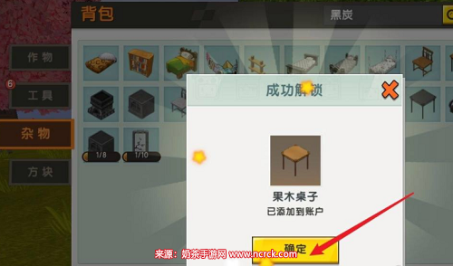 4、准备解锁需要的材料,点击解锁图标再点击小窗口确定按钮,解锁获得目标家具。