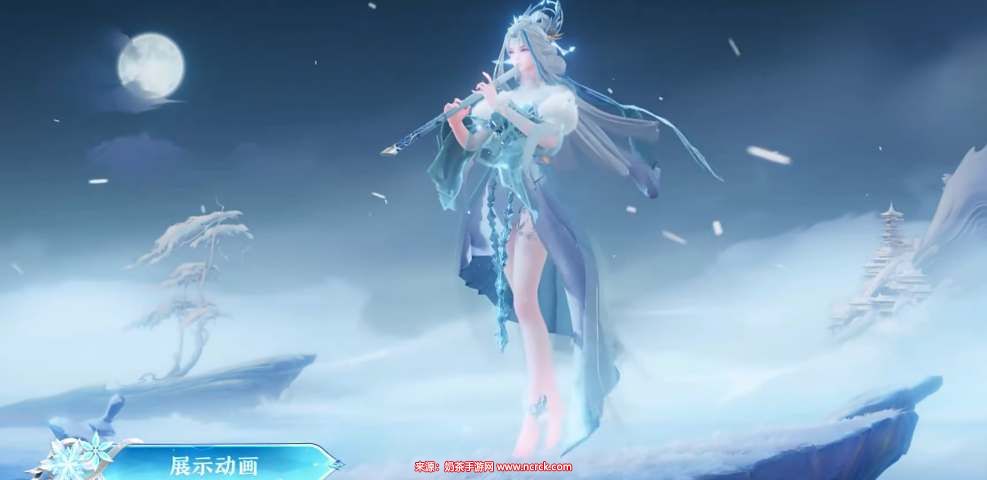 2、皮肤局内效果如下,这款皮肤是仙侠主题的,融合了很多的冰雪元素。