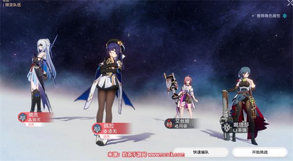 1、推荐阵容:镜流(试用)+佩拉(试用)+艾丝妲+娜塔莎。