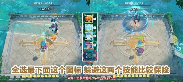 3、在挑战中注意躲避剑鬼的技能。可以点击第五号位来进行全体移动。