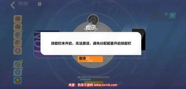 2、如果装备的能量值不足,就无法激活相应的技能栏。