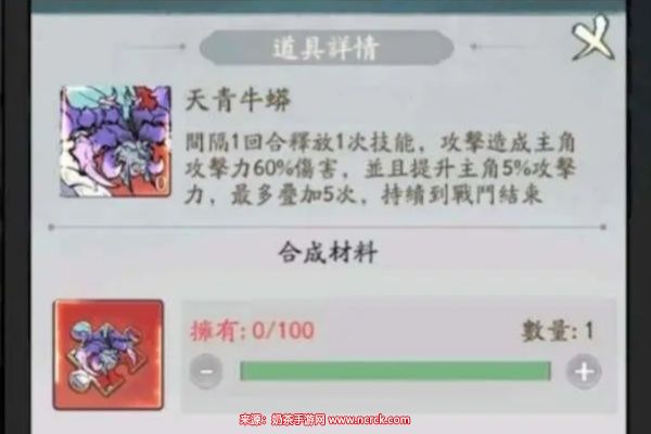 2、除了技能伤害加成外,天青牛蟒还能提升主角5%的攻击力,最多可以叠加5次,最高可达到25%的主角攻击力提升效果。