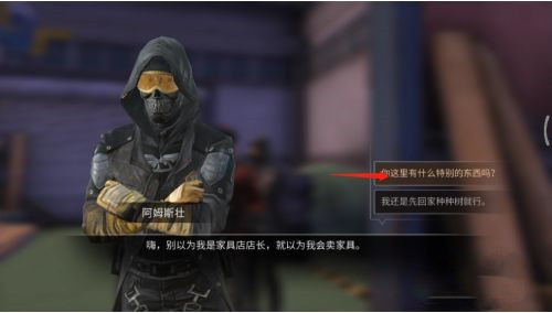 2、找到店门口的阿姆斯壮店长,点击交谈。