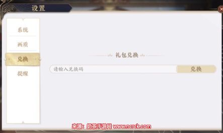 3、 在设置菜单中将有一个“兑码”的选项。