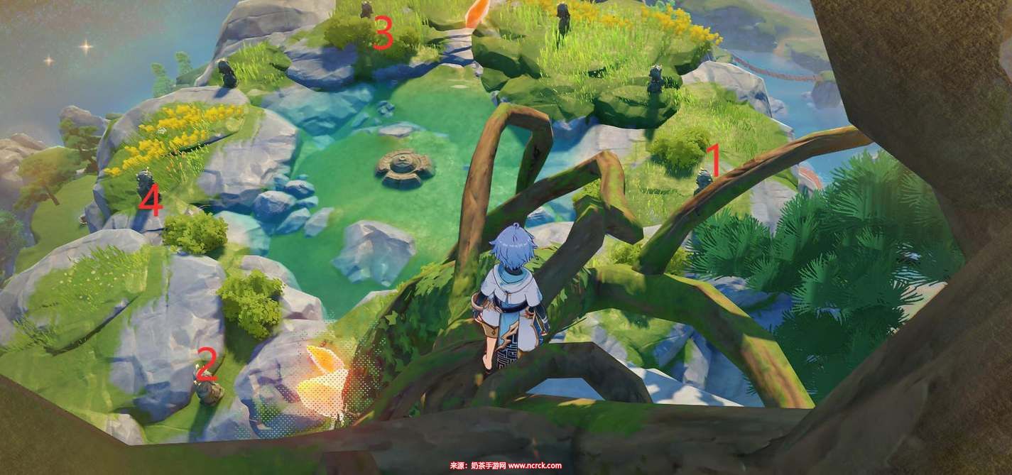 2、 玩家需要按照以下顺序点亮石像:风龙废墟——雪山——庆云顶——璃月港。