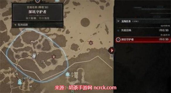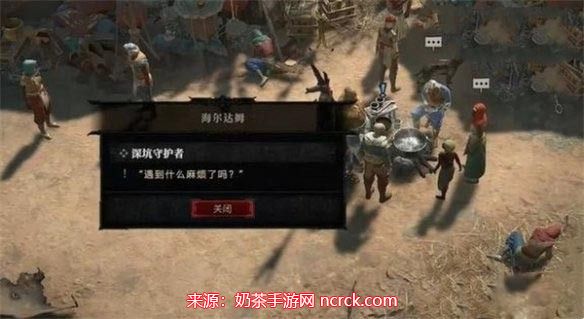 1、游戏中焦油坑的敌人是任务深坑守护者的一环,首先需要我们找到铁狼营地的海尔达姆进行对话。