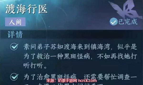 渡海行医任务是逆水寒手游中的一项重要任务,通过按照上述流程前往不同地点与NPC对话,您可以轻松完成任务,获得丰厚的奖励,希望这份攻略对您有所帮助,让您在这款游戏的冒险中更加游刃有余,想了解更多的攻略和资讯,欢迎关注奶茶手游网!