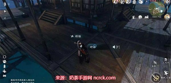3、接着继续前往(1660,756)的位置找到“拜烛”NPC进行对话。