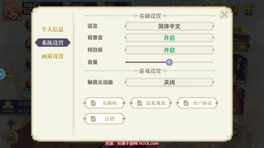 2、进入到玩家的信息界面后,点击左侧的系统设置按钮