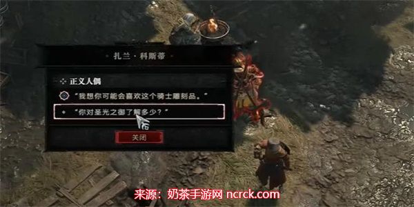 4、到达扎兰科斯蒂的位置后,玩家只需与其进行对话,交出骑士木雕即可。完成对话后玩家即可获得任务奖励。