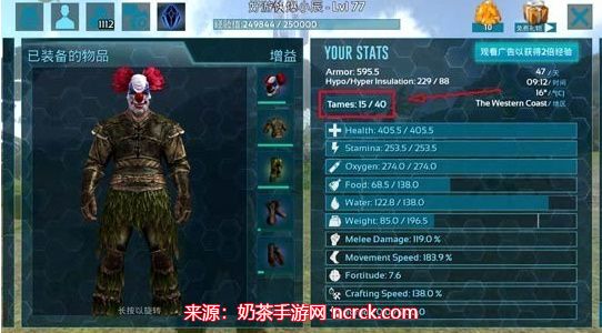 1、玩家如果出现龙丢失问题,可以打开背包菜单,在右侧点击Tames按钮,进入恐龙统计界面。