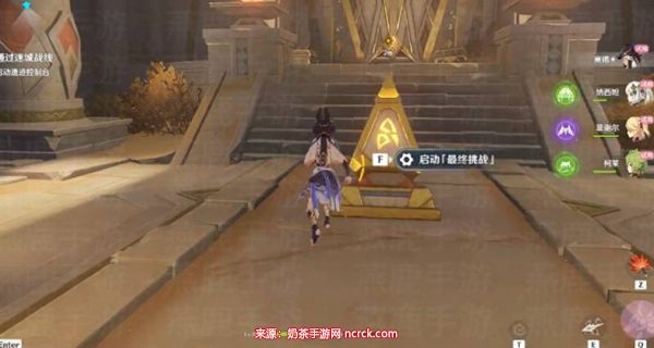 9、我们把三个符文全部激活以后就可以回到中间开启最终挑战了。