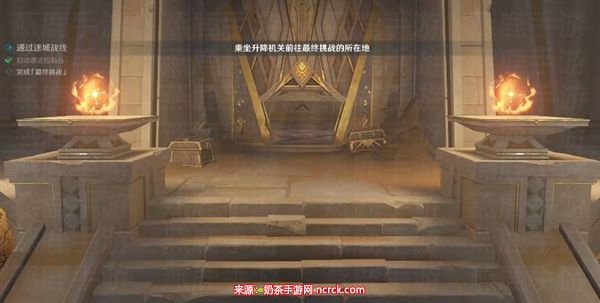 3、流程:玩家初始位置在中间。将东、南、西三个方向的古代符文激活后,回到初始房间开启电梯上楼,进入最终挑战房间完成挑战。
