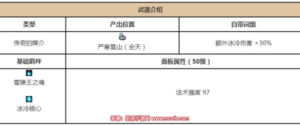 3、包含羁绊雪猿王之魂和冰冷核心,法术强度97,额外冰冷伤害30%。