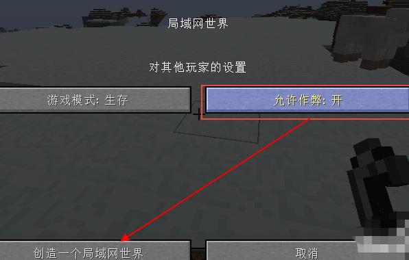 2、接着把作弊指令打开,点击一个创造局域网世界。