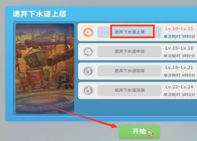 2.选择遗弃下水道上层,然后点击开始。