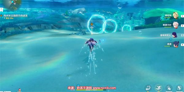 3、完成对话后潜水海中,按照指引前进。