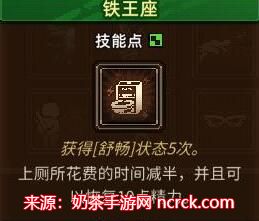 2、 效果:上厕所花费的时间减半,并且可恢复10点精力。