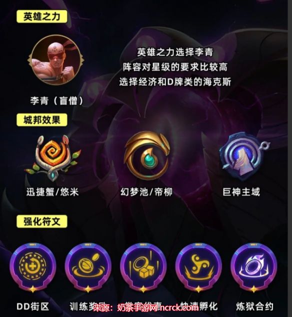 李青(盲僧)由于其独特的能力,我们推荐玩家选择经济和D牌类的海克斯。这将为后续的战斗奠定坚实的基础。