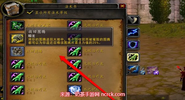 1、初期我们可以使用技能书中恢复里的“收回图腾”选项进行图腾的回收。