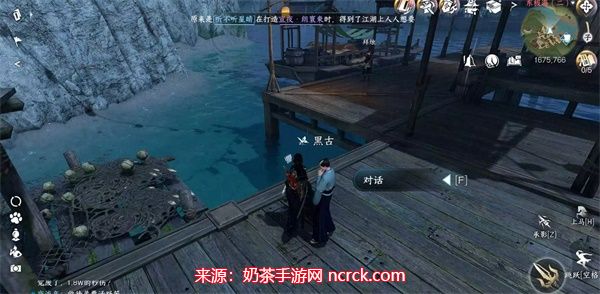 2、触发任务之后,接着前往(1675,766)找到NPC“黑古”进行对话。